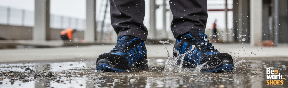 El calzado laboral hidrófugo está diseñado precisamente para estos escenarios habituales: repele el agua y retrasa su absorción en el empeine, manteniendo el pie seco y confortable durante la jornada sin penalizar la transpirabilidad ni la movilidad.